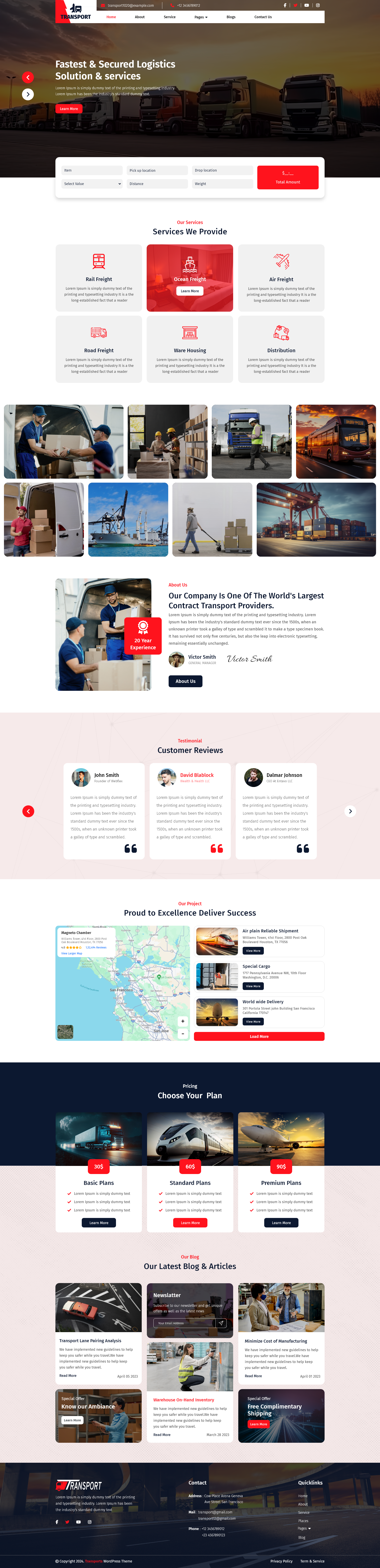 The Transport WordPress Theme excels in providing a range of benefits that enhance both functionality and visual appeal. As a theme, it offers high-quality design elements that are clean, modern, and optimised for showcasing transportation services like freight logistics, fleet management, and supply chain solutions. The layout is carefully structured to highlight critical information such as service offerings, company details, and contact information, making it easy for visitors to navigate and find what they need quickly. Additionally, the theme's fully responsive design ensures that your website looks and functions beautifully across all devices, from desktops to smartphones, offering a seamless experience for users no matter how they access your site. This theme is also built with customization and flexibility in mind, which are crucial benefits for any business. You can tailor the theme to reflect your brand’s identity through various customization options, including multiple layout choices, colour schemes, and typography settings.